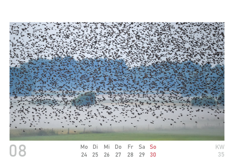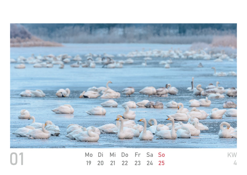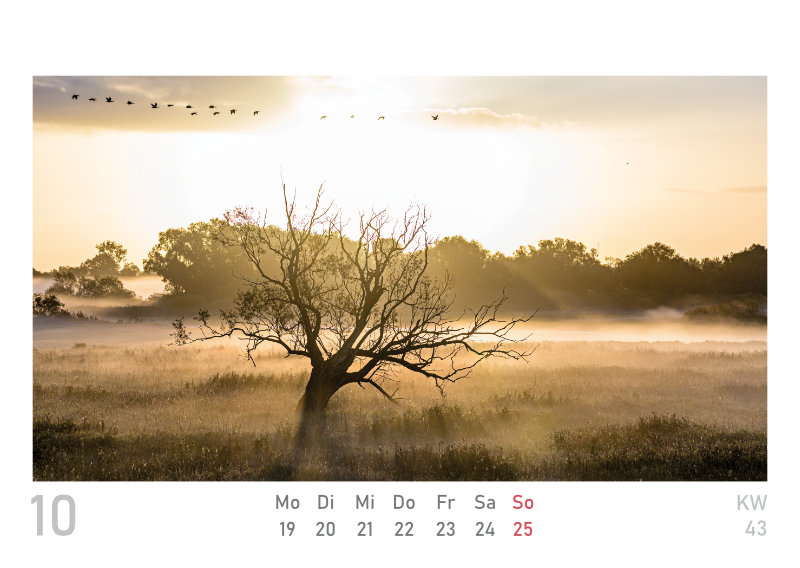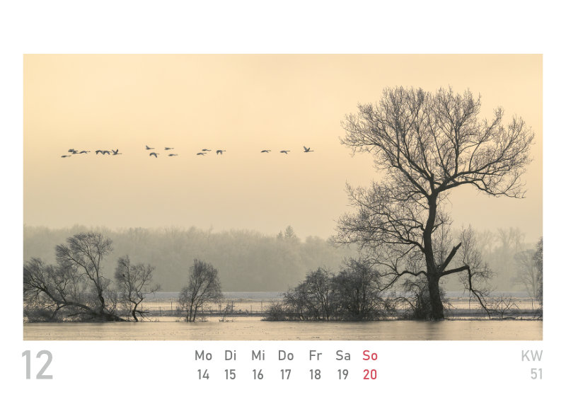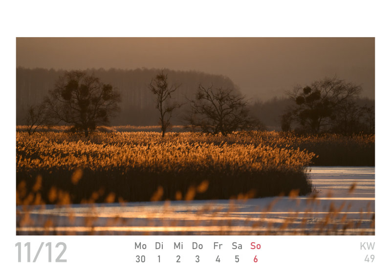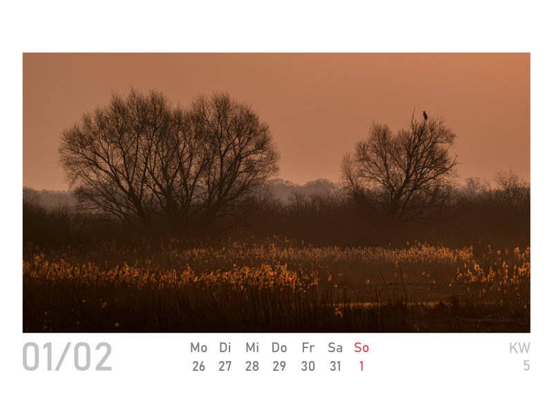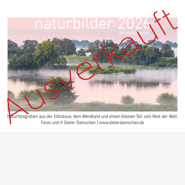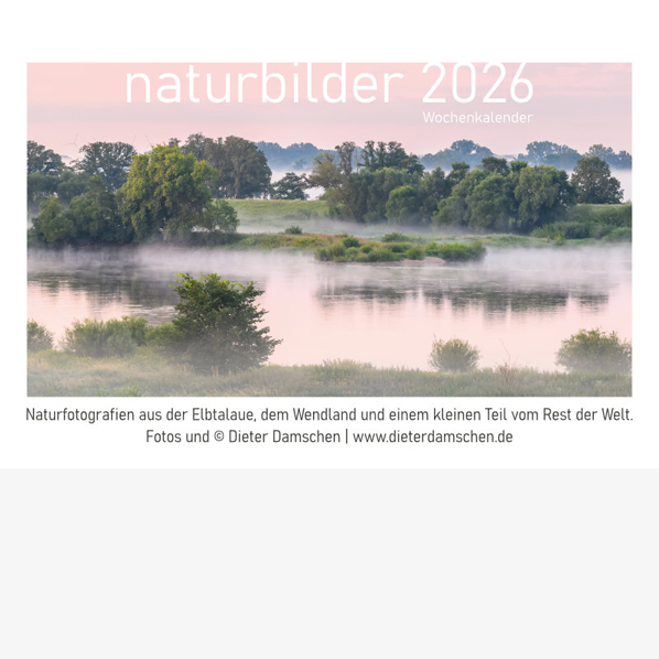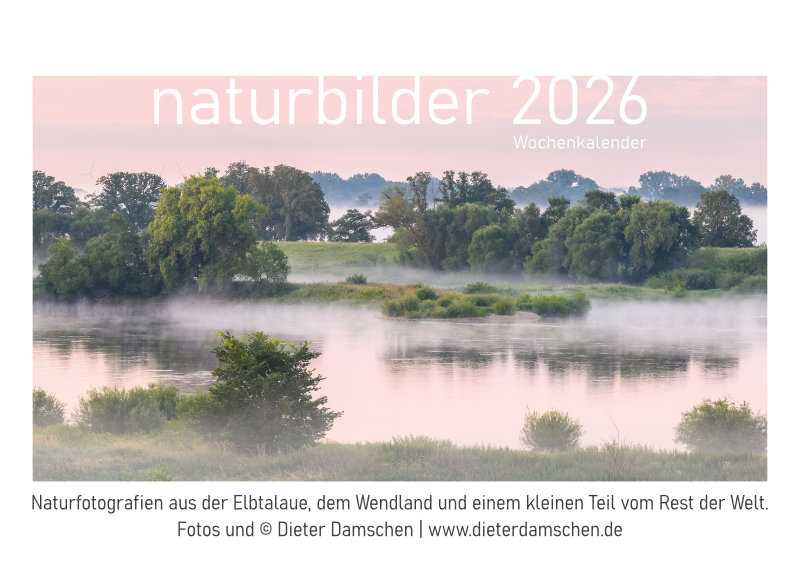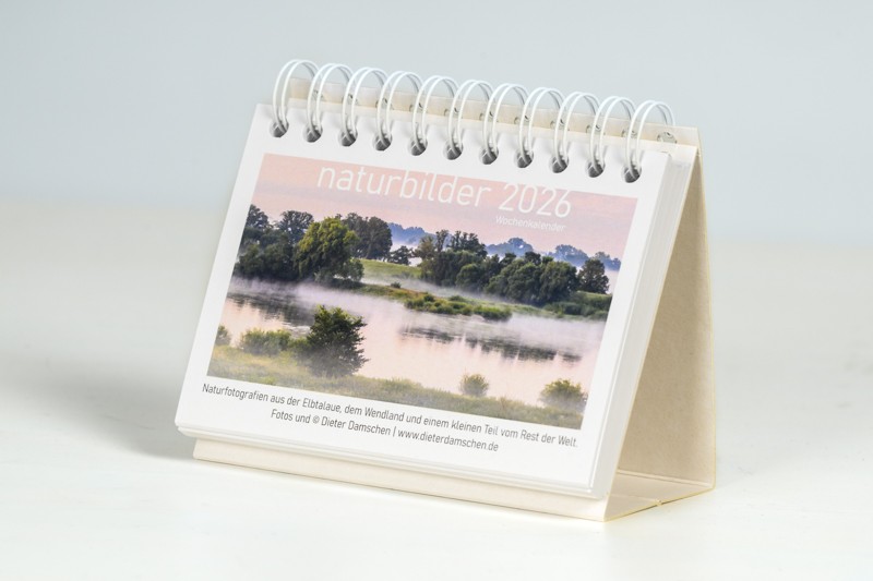 Den beliebten Wandkalender aus der Elbtalaue „naturbilder“ gibt es nun auch im kleinen Format (DIN A6), als Wochenkalender zum Aufstellen, mit 53 Inhaltsseiten. Die 24 Fotos des „großen“ Kalenders für 2026 sind mit dabei, plus 29 weitere Aufnahmen.